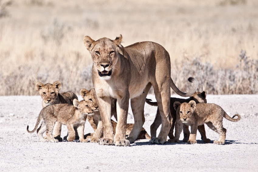 Etosha couvre plus de 20 000 km² et abrite une grande diversité d’animaux : éléphants, lions, girafes, zèbres, rhinocéros et de nombreuses espèces d’antilopes. Les points d’eau du parc offrent souvent de très belles opportunités d’observation.